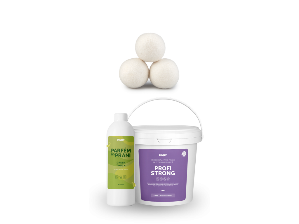 parfém do praní 250ml + prací prášek 3,7kg + vlněné koule
