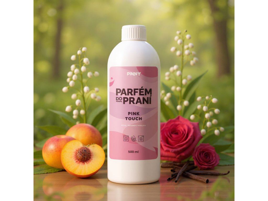 PINK TOUCH je parfém do praní, který spojuje šťavnaté tóny broskve s jemnou květinovou harmonií růže a konvalinky. V jeho srdci se mísí kořeněný nádech hřebíčku, jenž dodává vůni hloubku a charakter. Základ kompozice tvoří hebký mošus, sladká vanilka a smyslná pačule, díky nimž působí prádlo po vyprání nejen čistě, ale i elegantně a neodolatelně přitažlivě.